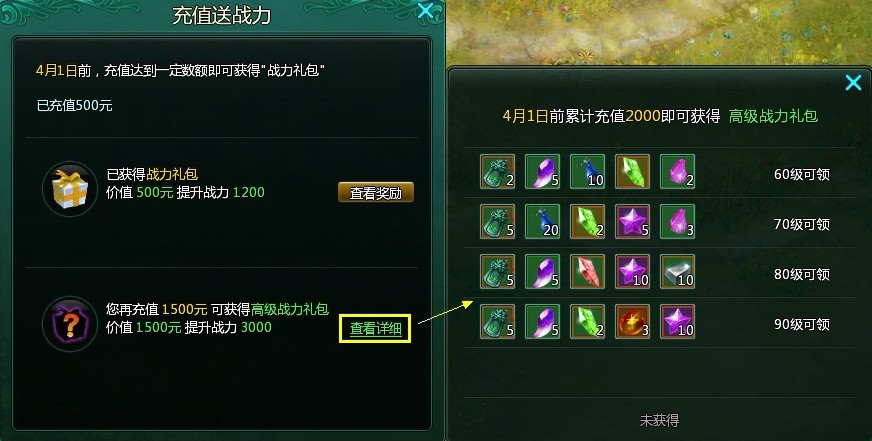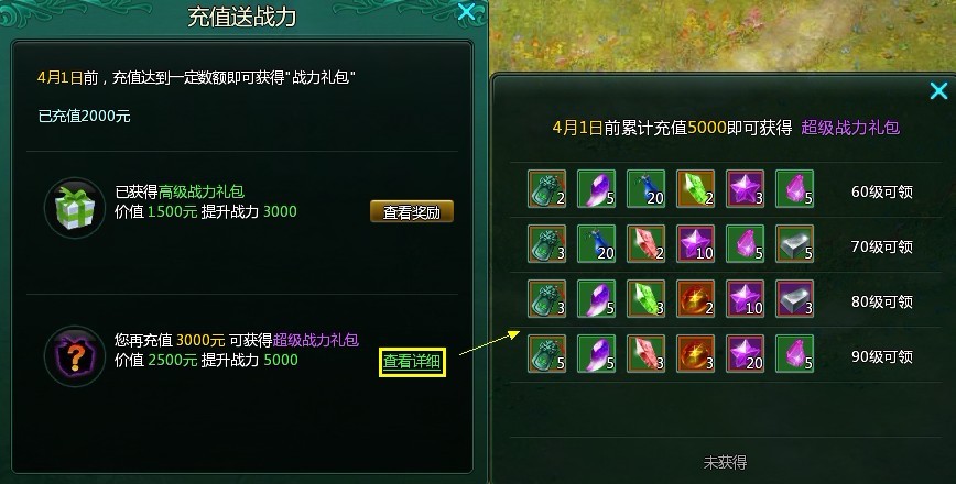 2012年4月1日以后开启的新区将有战力礼包领取哦!