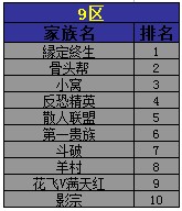 9区“家族、神兵排行榜”奖励名单