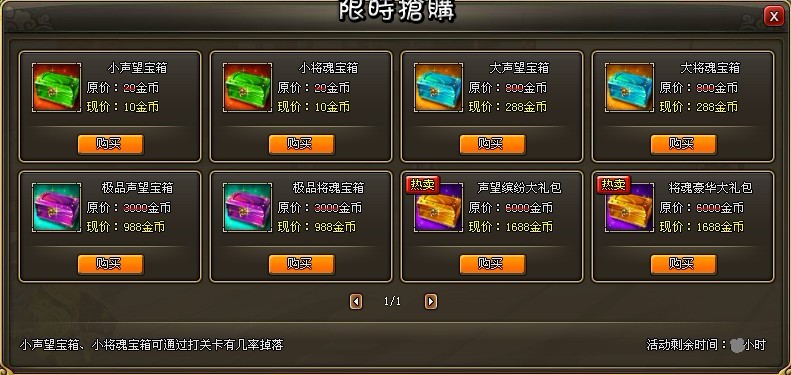 【活动内容】:活动期间内,大于或等于70级的玩家可通过金币购买和关卡掉落获得稀世宝箱,打开可获得海量将魂、声望以及珍贵道具奖励。