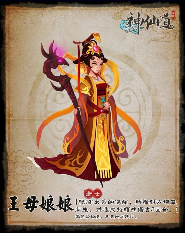3)王母娘娘:术士,130万声望,绝技太美的伤痛,可解除对方增益状态,并造成持续性伤害3回合