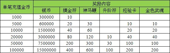 3. 活动内容:活动时间内,玩家单笔充值达到一定额度时可领取对应的充值礼包。